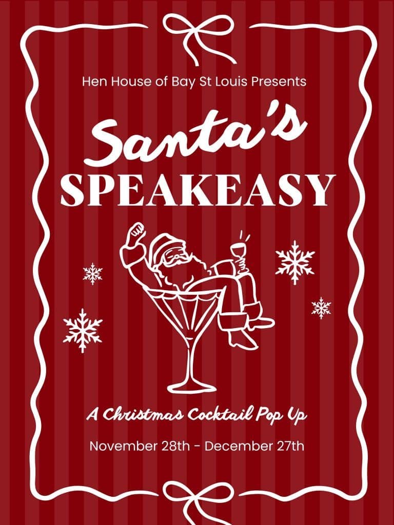 December 13th is the day to get your holiday shopping done in beautiful Bay St Louis! Our idyllic town will be dressed in her finest holiday decor and our favorite local businesses will be displaying Holiday postcards. It will be a great day for photo ops. Santa will all over town of course ready for selfies. 10-5 will be a family fun day, 5-8 our shops will stay open late pouring cocktails as you finish up your shopping.