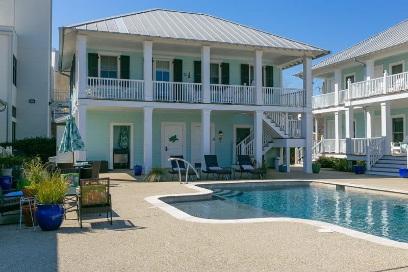 Bay Town “Inn features ten guest suites of over 500 square feet” which each include a kitchen and living area, “full bath and bedroom with a king bed.” Many of these king suites offer a beautiful view of the pool and courtyard as well.