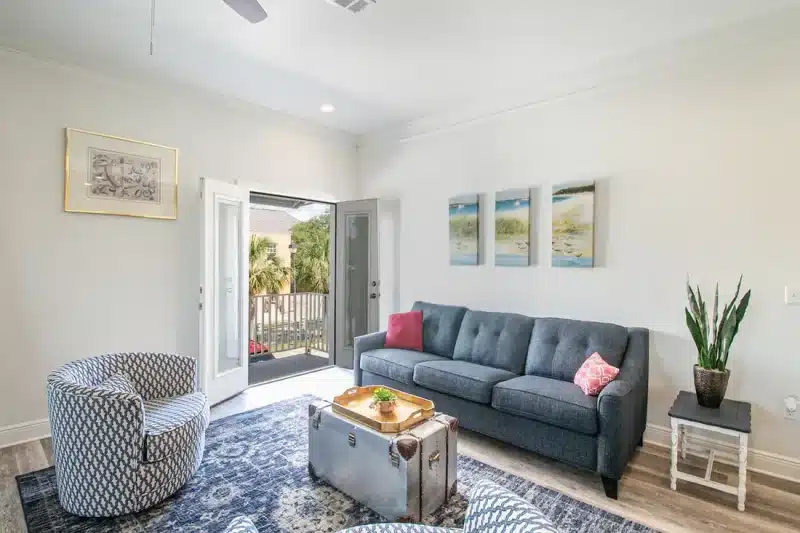 Centered on the first block of Main St. in beautiful downtown Bay St. Louis, this loft style home is well equipped and beautifully decorated! The master bathroom features a king bed and private bathroom with walk in shower. The second bedroom features a queen bed and is in close proximity to the second full bath. The kitchen, living room and dining areas are open with a view from the private balcony overlooking Main St.