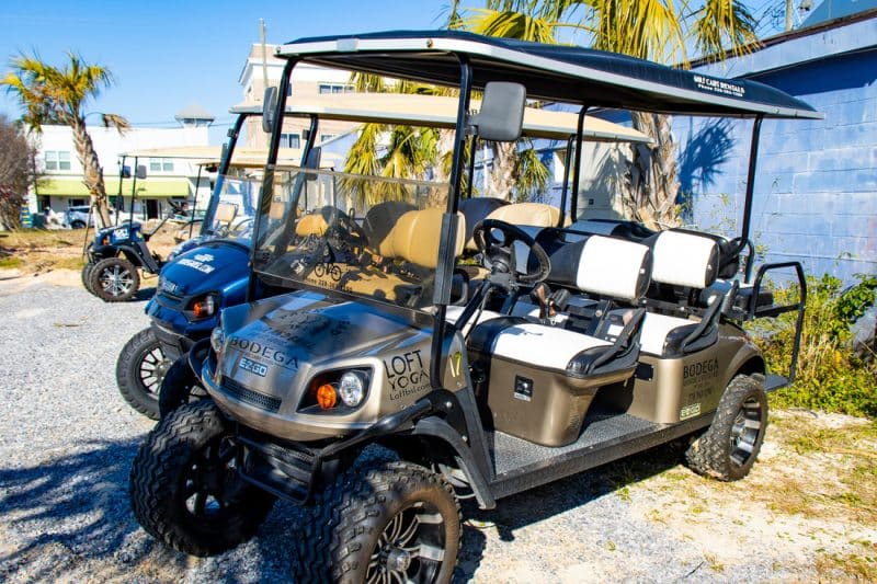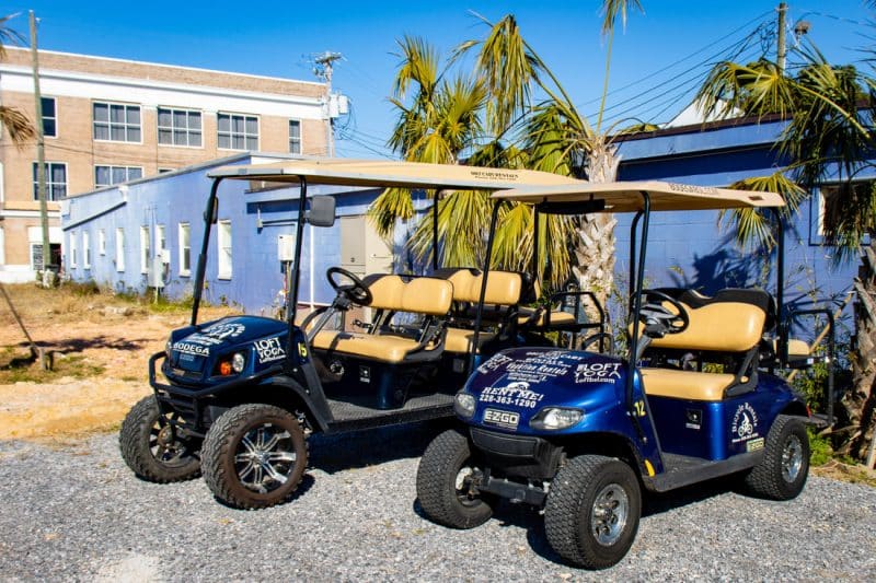 If you’re looking for a fun and efficient way to explore everything Old Town Bay St. Louis has to offer, Bodega Adventure Rentals has golf cart and bicycle rental options for the entire family. Whether you are visiting the Bay just for a Sunday Funday or renting a vacation home for a week, Bodega Adventure Rentals offers golf cart rentals anywhere from 4 hours to weeks at a time to fit all your adventure needs. Their rental golf carts are available in two different sizes: 4 passenger and 6 passenger.